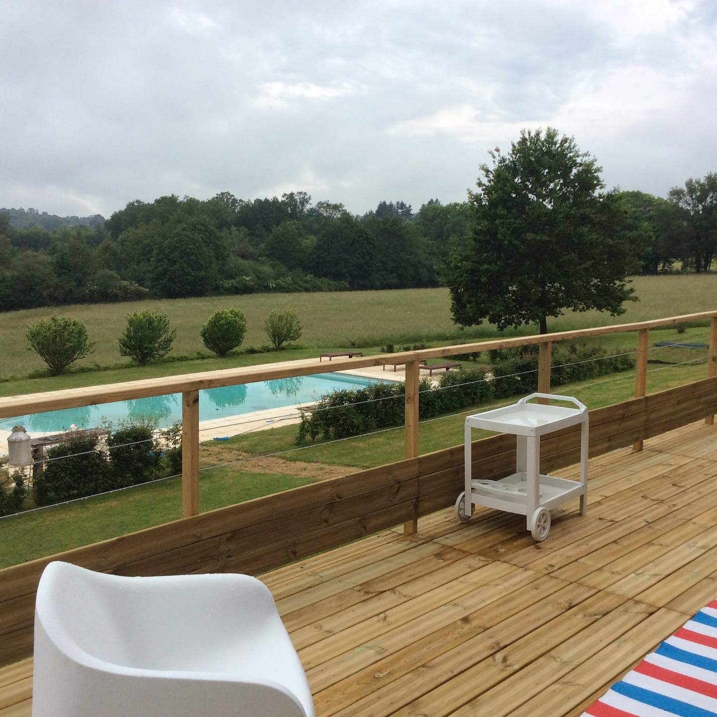 En plus de cette nature préservée, sans voisins visibles, Vous y profiterez d’une grande piscine sécurisée de 12 mètres par 6 en saison et d’un espace SPA avec jacuzzi 5 places et d’un sauna 6 places dédiés toute l’année à votre bien être.